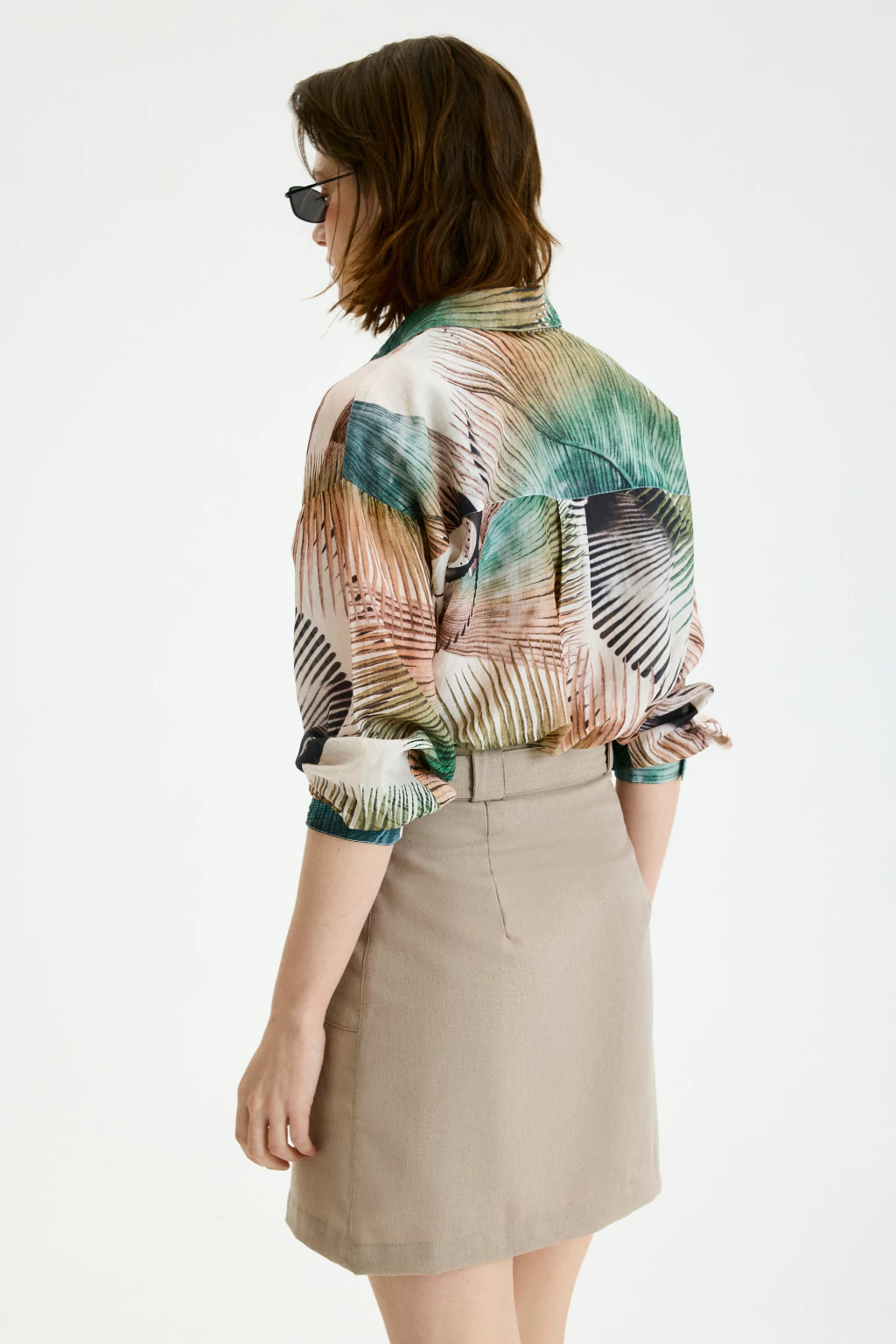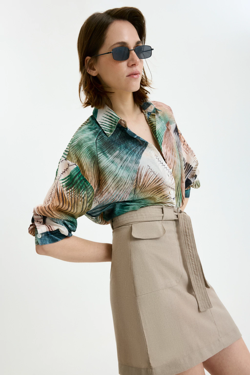 Es una camisa confeccionada en cotton silk con estampa exclusiva de palmeras que le da un aire fresco y veraniego. Su calce es relajado, con mangas largas y botones delanteros, ideal para usar suelta o fajada. Amamos porque tiene una onda canchera y sofisticada a la vez, perfecta para levantar cualquier look urbano o playero.